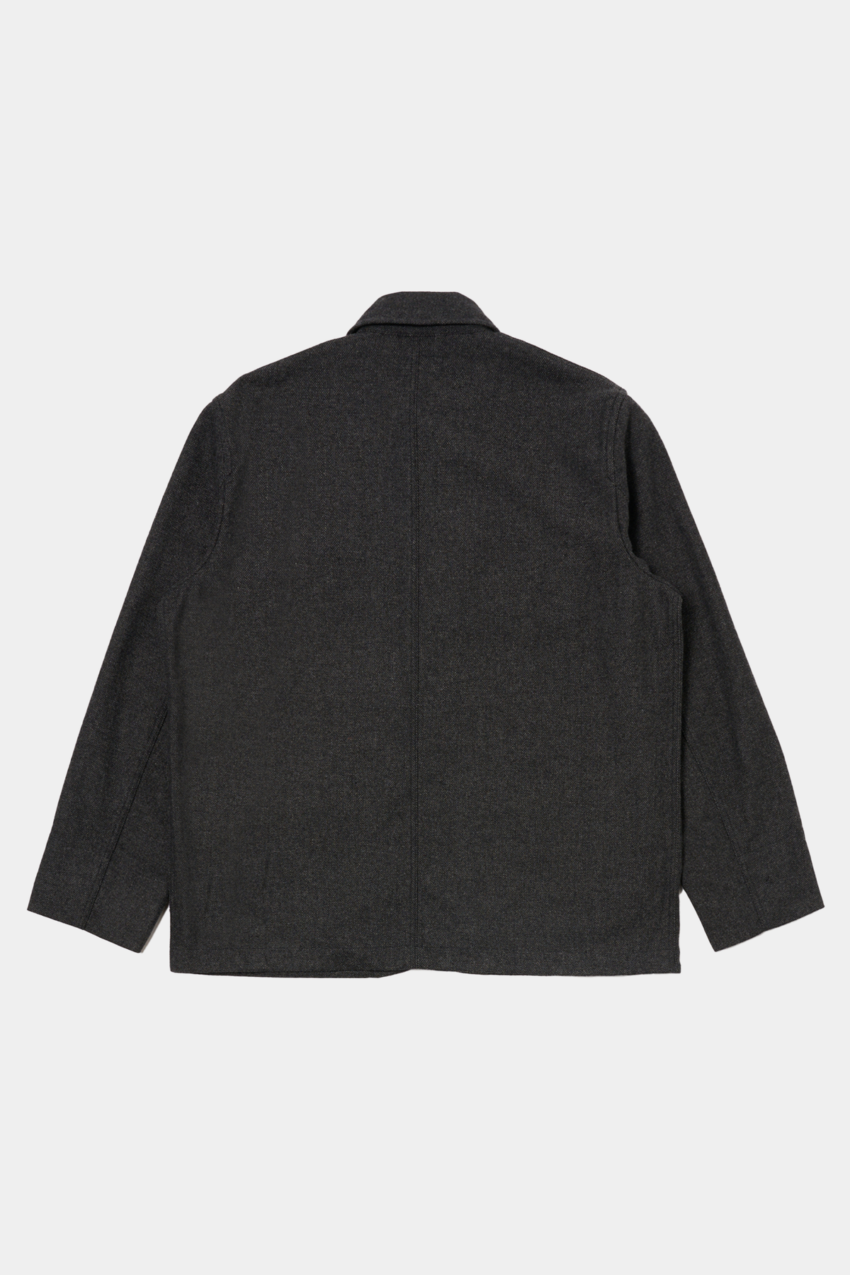 Giacca realizzata in misto lana, colletto revers e abbottonatura frontale. Sono presenti tasche a toppa frontali, taschini a toppa sul petto di cui una con patta e bottone e una taschina interna con bottone. La giacca presenta una vestibilità ampia.