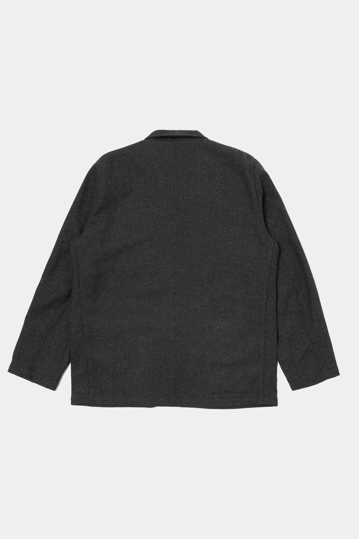 La giacca realizzata in misto lana dall'effetto sale e pepe dalla vestibilità rilassata. Con il colletto revers e i tre bottoni sul davanti, dispone di due tasche applicate ed un taschino sul petto.