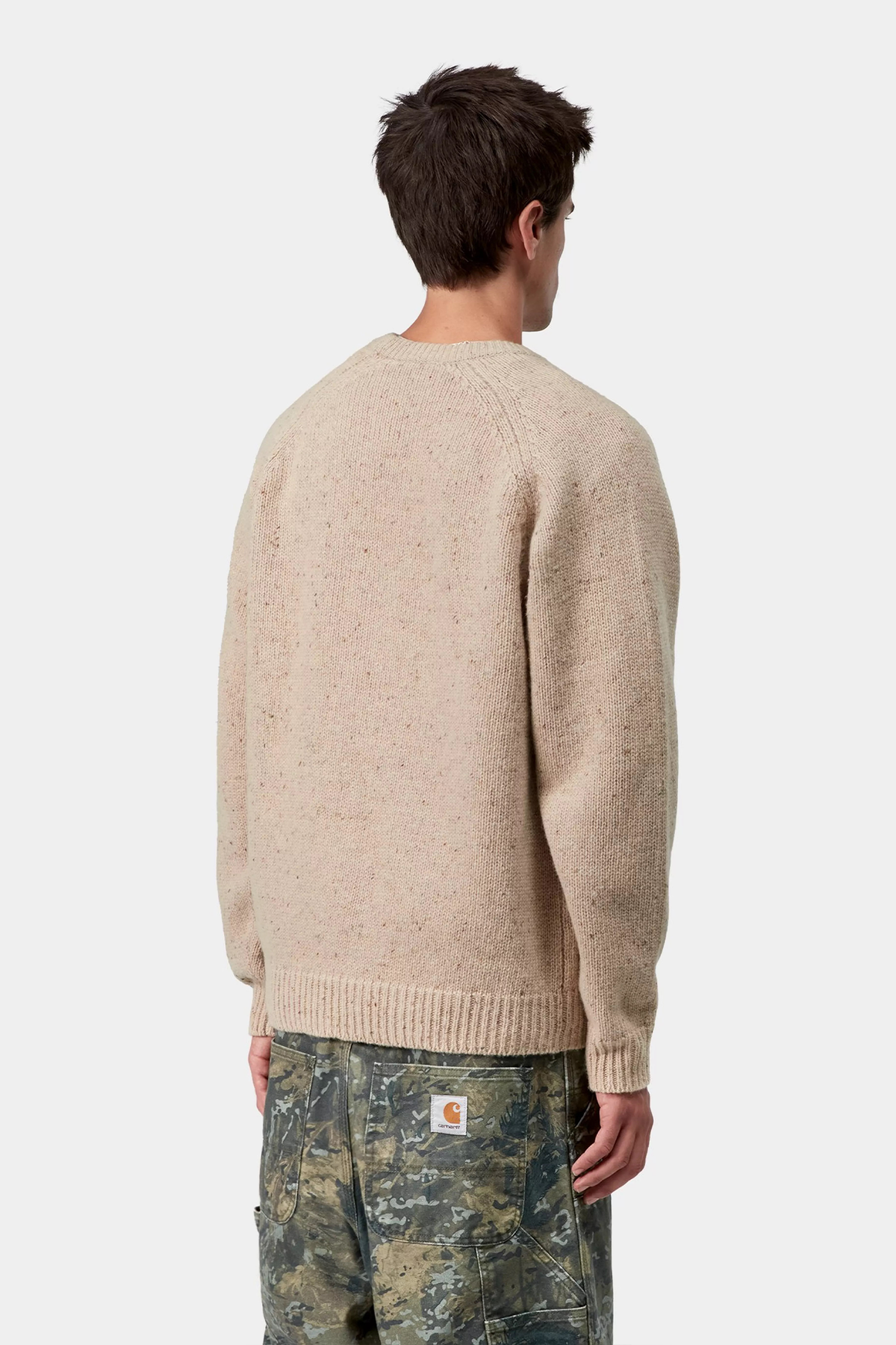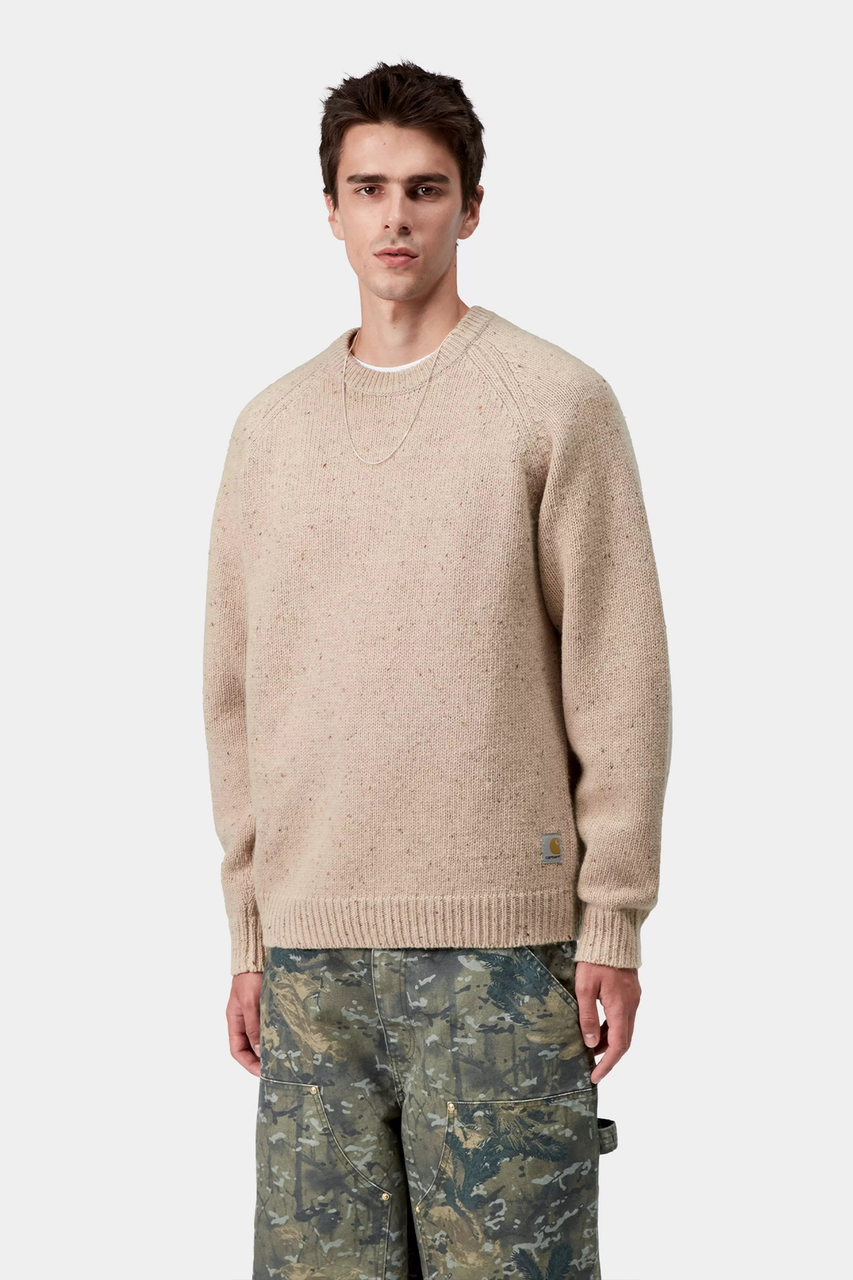 Maglia Anglistic realizzato in un caldo misto di lana di agnello, cotone e acrilico, è caratterizzato da vestibilità regolare e presenta maniche raglan. La maglia è inoltre caratterizzata da un aspetto vagamente puntinato ed è impreziosita da un’etichetta quadrata in tessuto in corrispondenza dell’orlo.