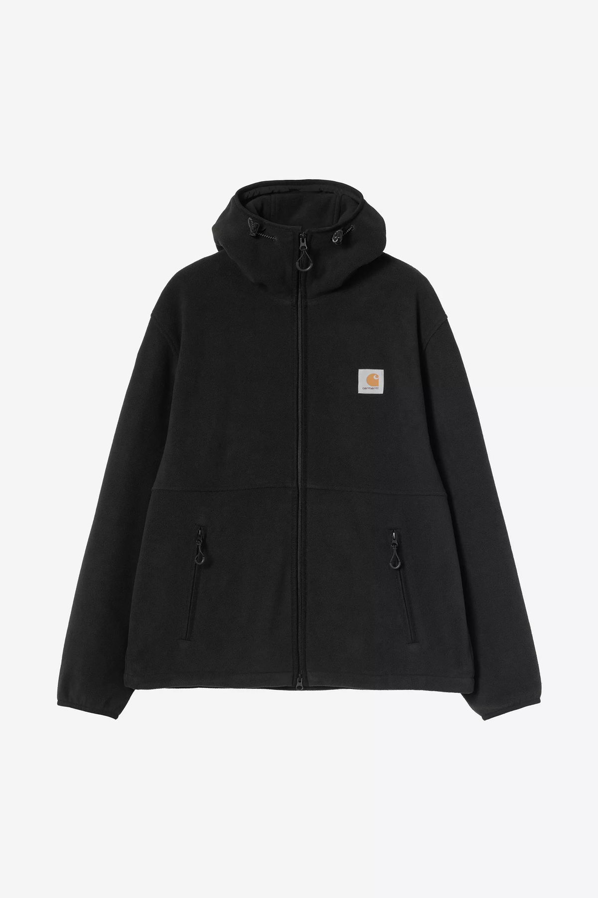 Giacca realizzata in pile di poliestere di peso medio con fodera in rete. Il capo presenta inoltre cappuccio e fascia inferiore regolabili e tasche frontali con cerniera. Un'etichetta quadrata riflettente completa il design.