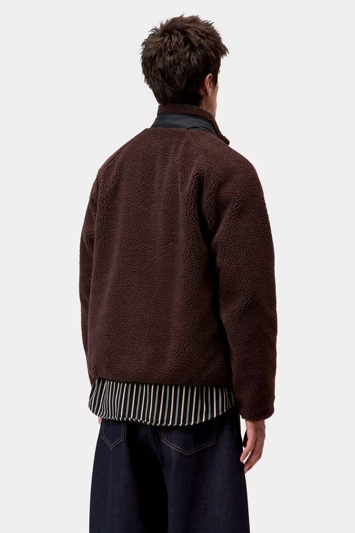 Giubbotto realizzato in pile pesante,  presenta dettagli in taffetà di nylon a contrasto e un solo taschino sul petto con etichetta Carhartt WIP. È inoltre caratterizzata da imbottitura a rete per una buona traspirabilità. Sono presenti tasche laterali con cerniera ed un taschino sul petto con cerniera.