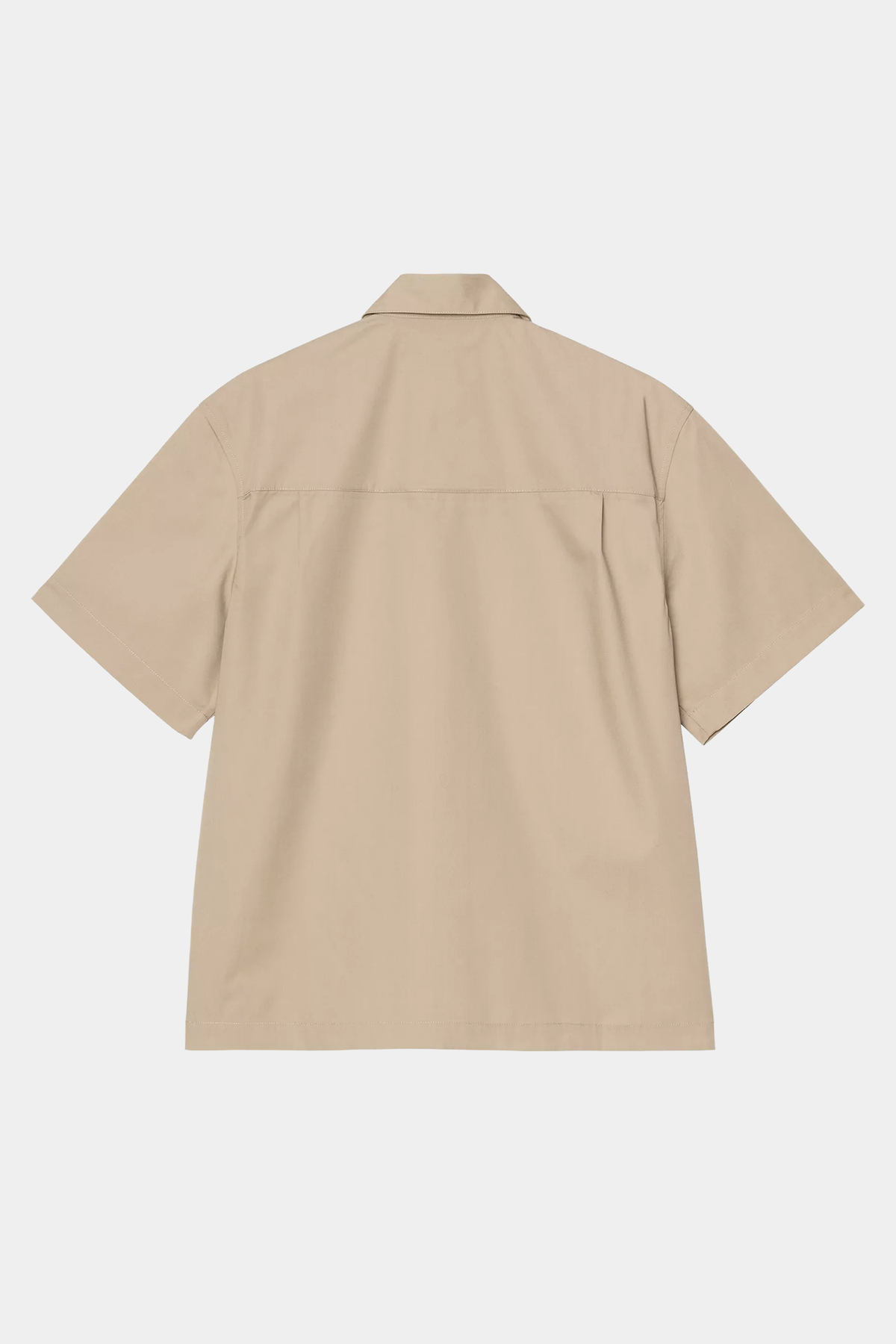 Camicia a manica corta realizzata in poliestere-cotone di medio peso, presenta vestibilità ampia ed è stata sottoposta a lavaggio per maggior morbidezza. Il capo è dotato di chiusura con zip a due vie. Rifinisce il modello un’etichetta con logo in tessuto.