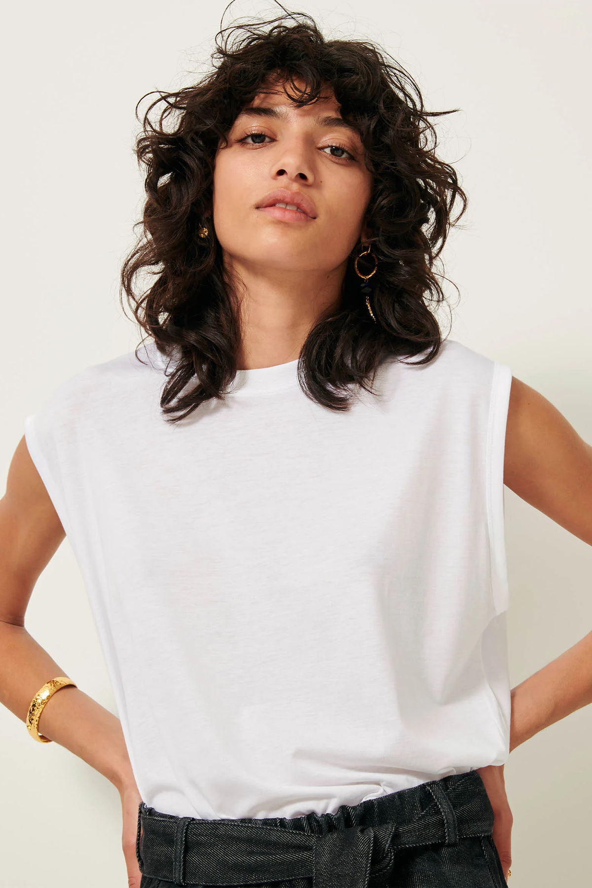 T-Shirt smanicata realizzata in jersey fluido.