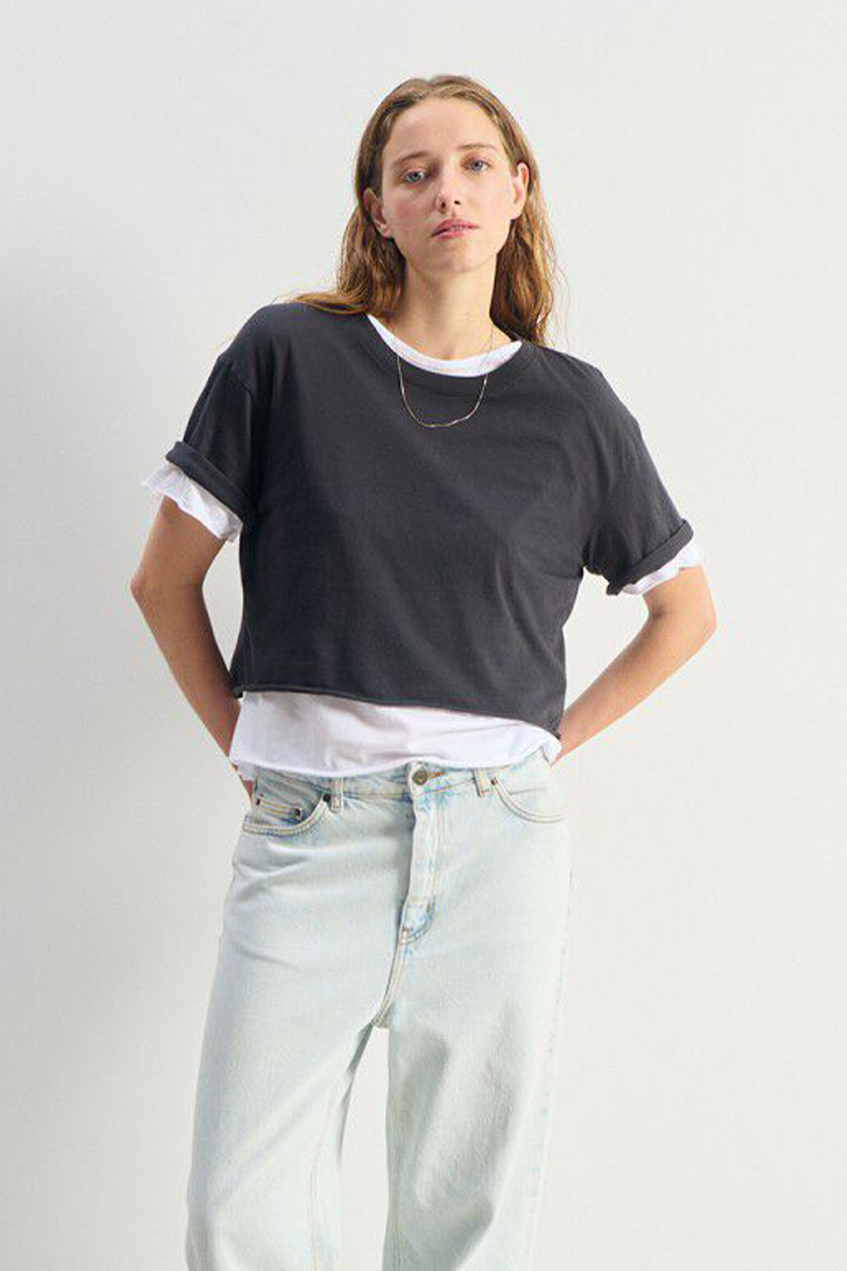 T-shirt a manica corta girocollo dal taglio crop e dal fondo tagliato a vivo.