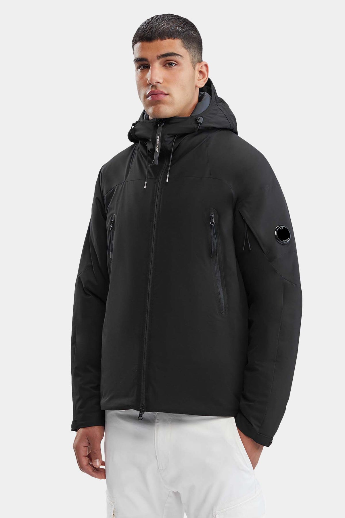 Giubbotto con cappuccio Pro-Tek realizzato in un tessuto innovativo antistrappo che combina l'elasticità e la resistenza al vento e all'acqua. La chiusura con cerniera e le tasche con cerniera offrono praticità mentre il cappuccio regolabile garantisce protezione dalle intemperie. Aggiungi un tocco di stile con il taschino sul braccio con dettaglio Lens.