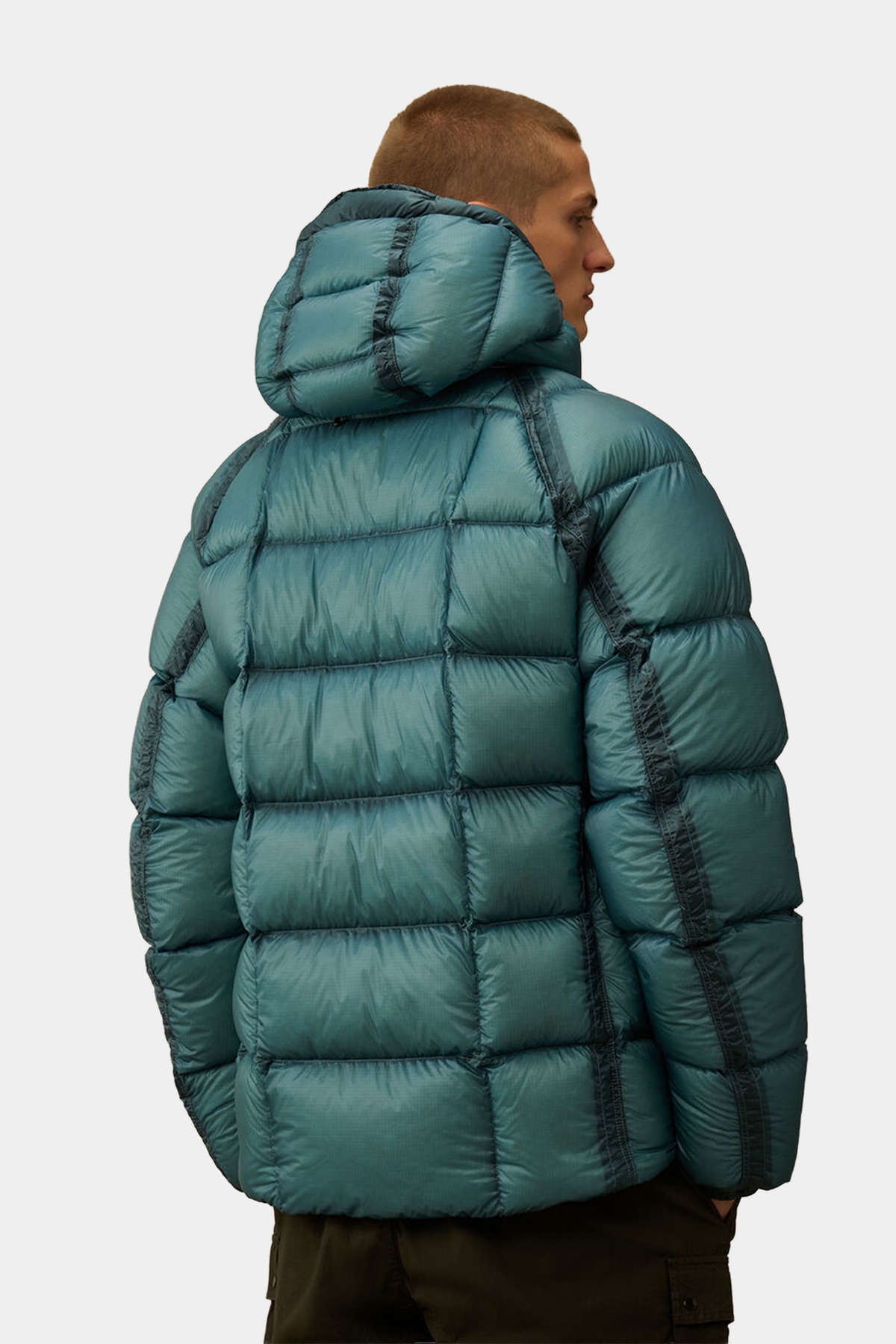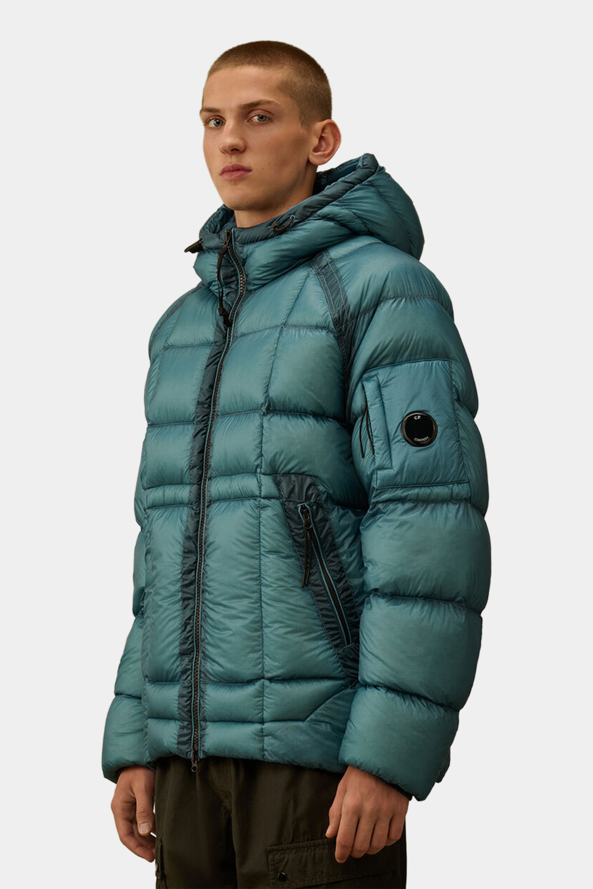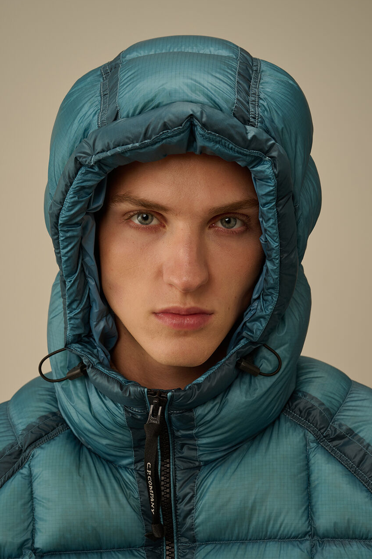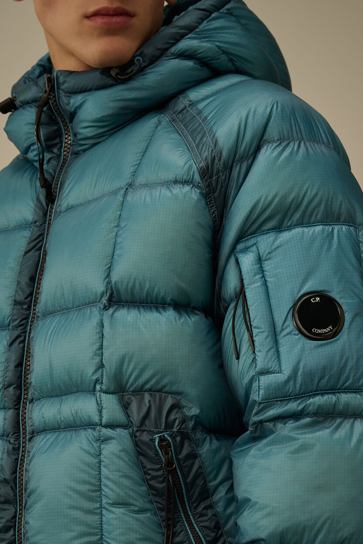 Il giubbotto con cappuccio DD Shell è realizzato in nylon micro-ripstop opaco 7 denari e imbottito con piumino tramite un processo di iniezione diretta, garantendo leggerezza e trasparenza. Il cappuccio regolabile, la chiusura full zip e le tasche zip laterali offrono funzionalità, mentre il taschino con Lente su manica e i polsini a costine donano uno stile unico.