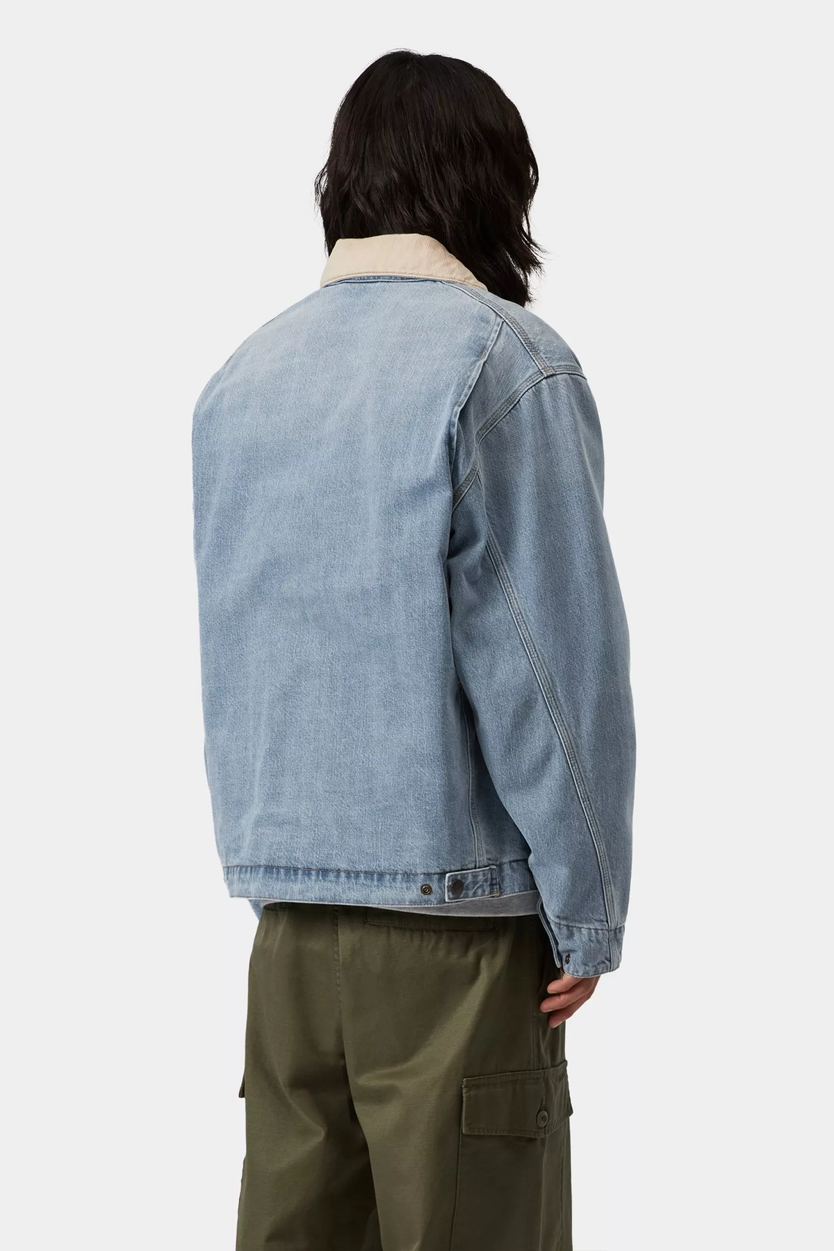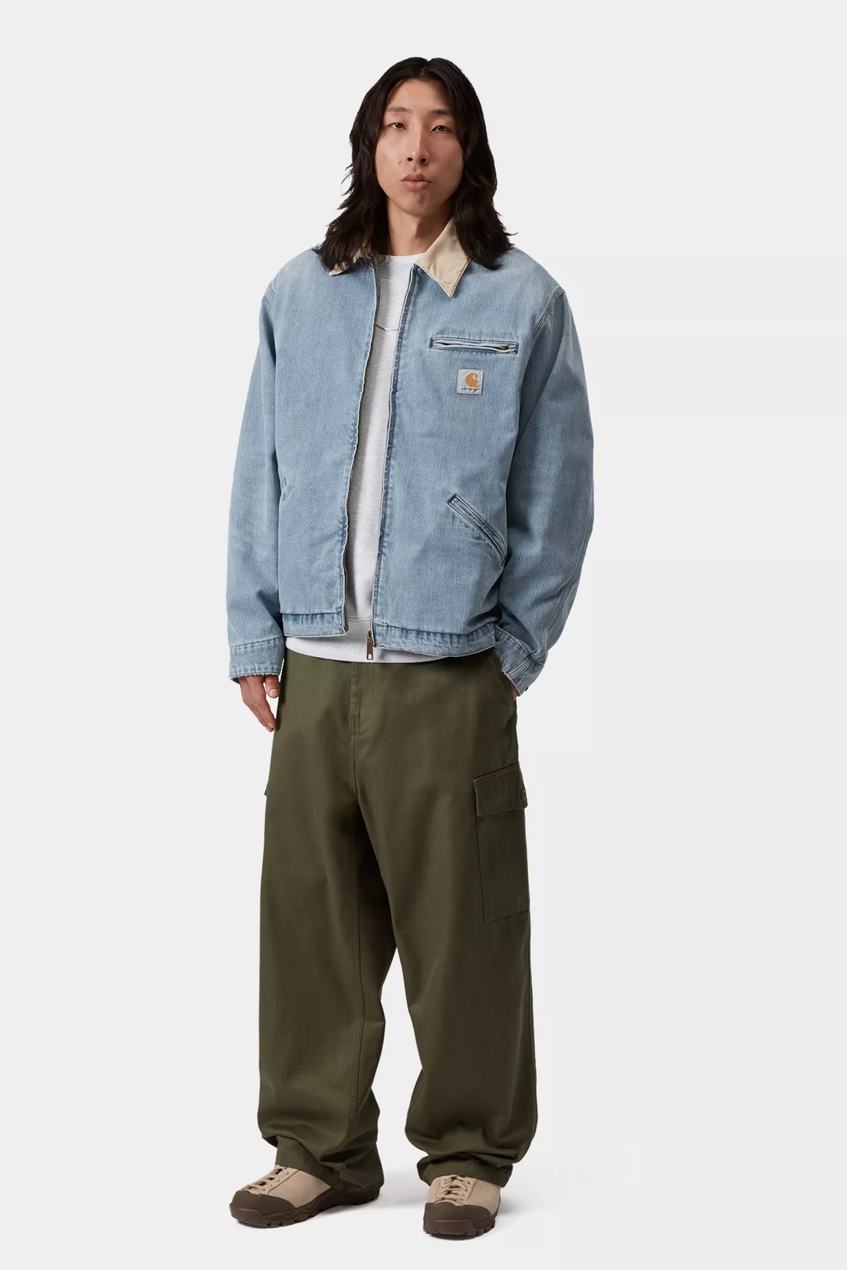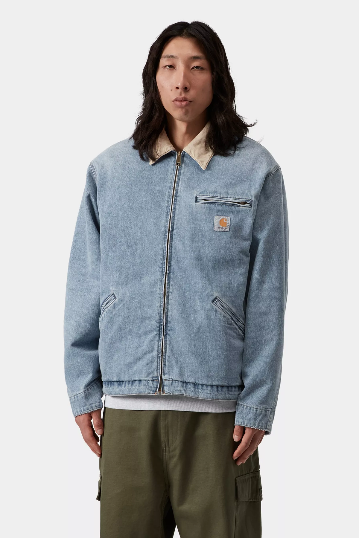 Giubbotto realizzato in denim di cotone pesante, con corpo foderato in popeline e maniche foderate in nylon. La zip anteriore, le due tasche a filetto e la tasca con zip sul petto sono elementi funzionali aggiuntivi. Il design è rifinito da un’etichetta quadrata in tessuto.