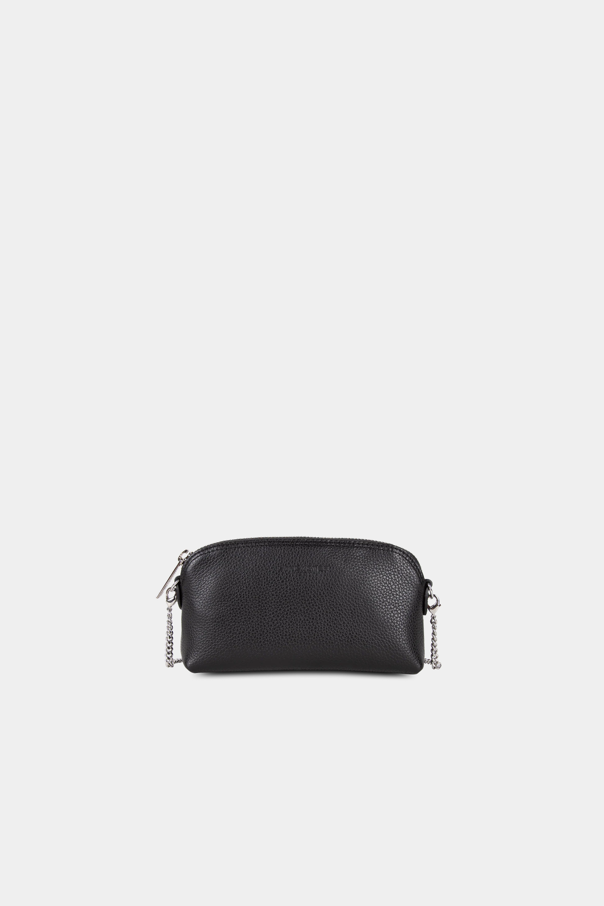 Borsa piccola a tracolla realizzata in pelle granata con tasca interna singola e catena a spalla.