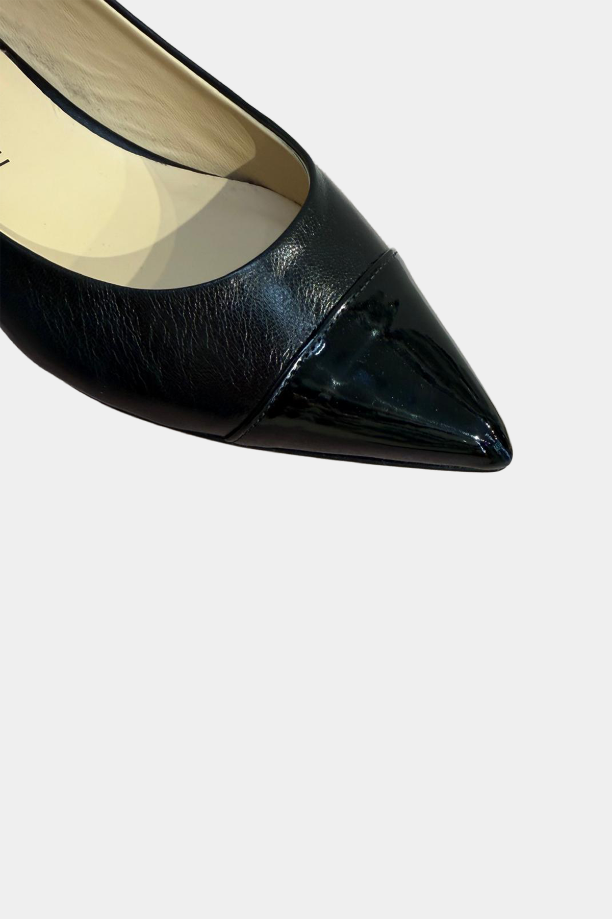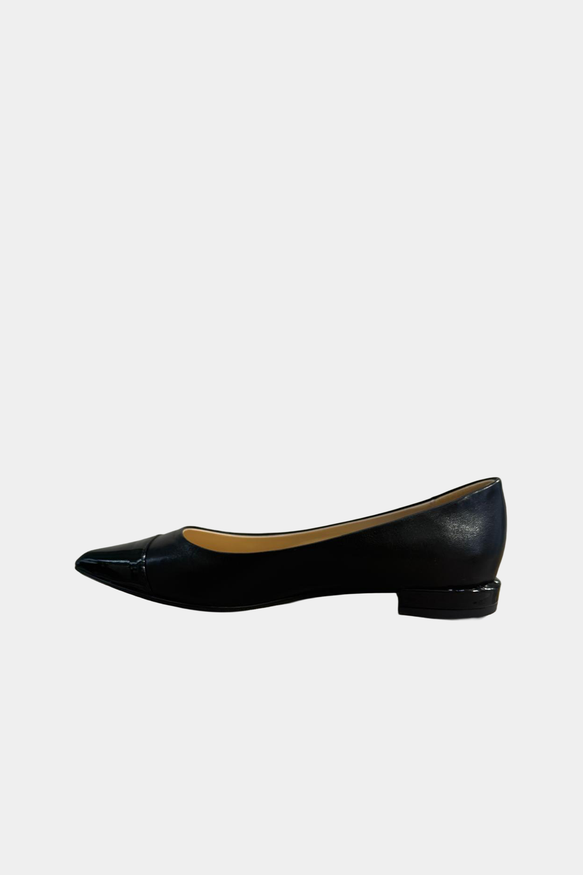 Ballerina a punta realizzata in pelle con punta in vernice.