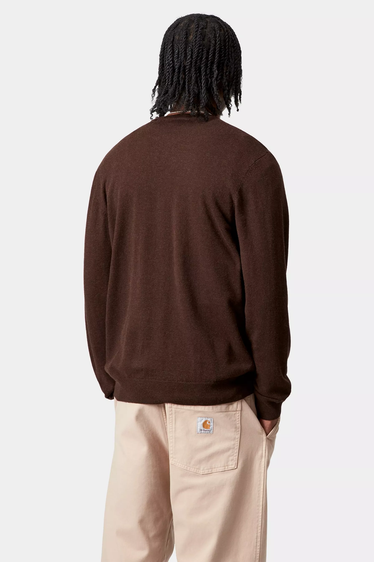 Maglia realizzata in un morbido misto di lana d’agnello, presenta colletto, orlo e polsini a coste. La maglia è rifinita dal ricamo del logo “C” di Carhartt WIP sul petto.