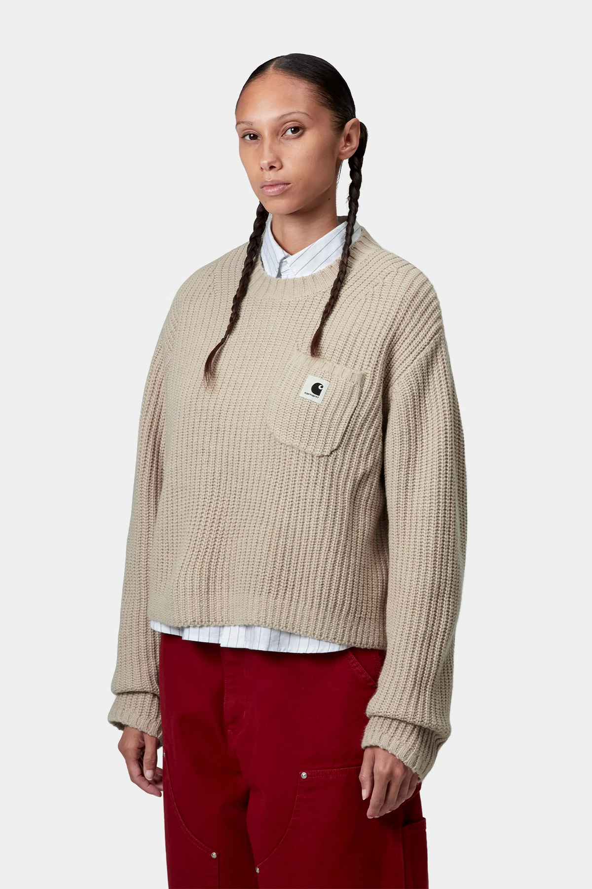La Women’s Mira Sweater è realizzata misto lana e presenta il giromanica abbassato ed una tasca sul petto impreziosita da un’etichetta quadrata in tessuto.