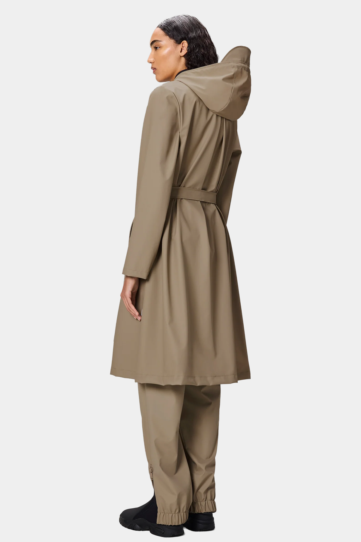 Impermeabile lungo A-Line impermeabile donna presenta una silhouette trapezoidale e una cintura rimovibile che sottolinea il punto vita per un tocco di eleganza. Il tradizionale cappuccio con coulisse e tasche laterali ti terranno al sicuro dalle intemperie, mentre i polsini regolabili e la cintura ti offrono il massimo comfort. Realizzato con il leggero tessuto PU di Rains.