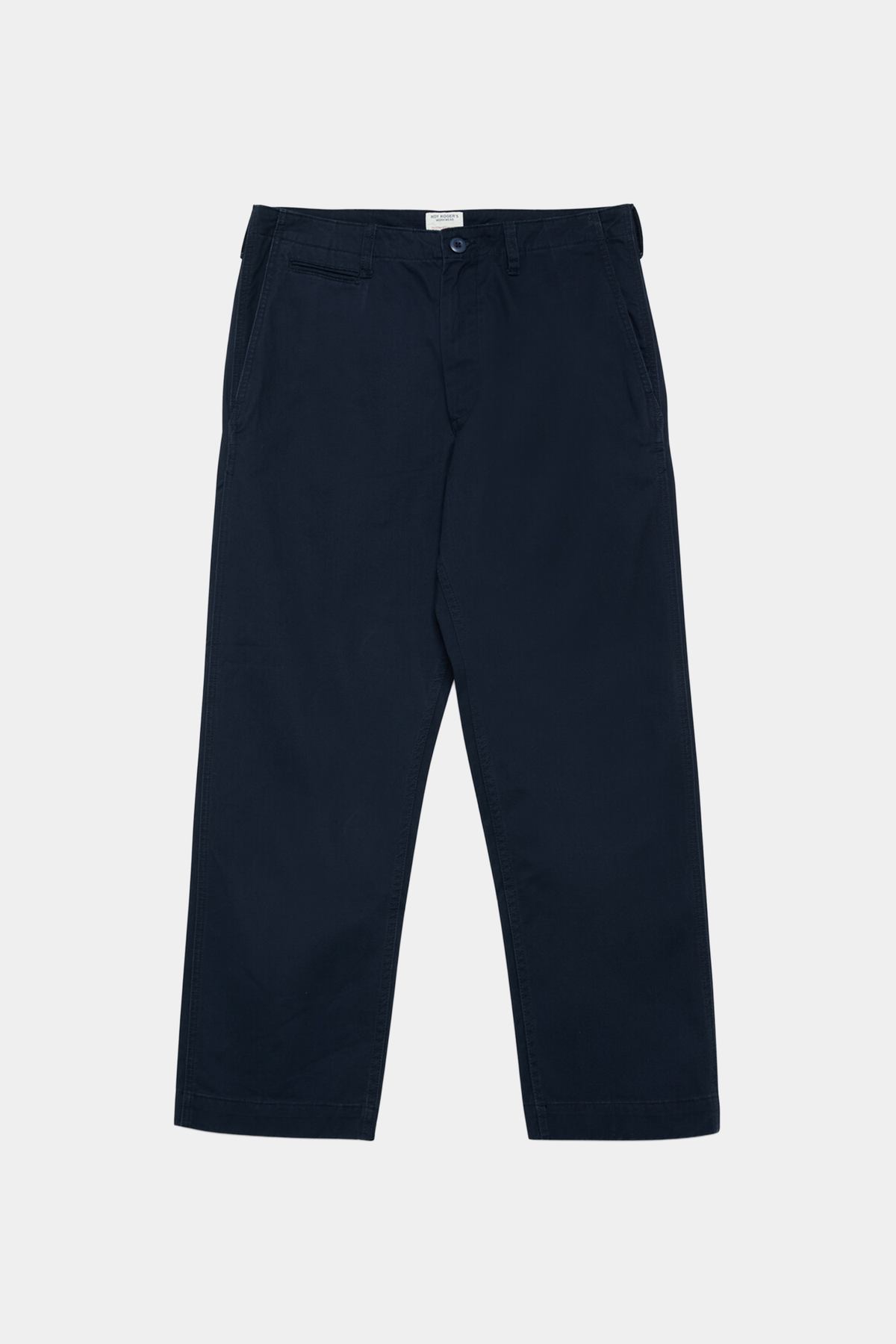 Pantaloni chino realizzati in gabardina di cotone con chiusura con bottoni e cerniera e passanti per cintura. Sono presenti tasche a filetto laterali e tasche a filetto posteriori.