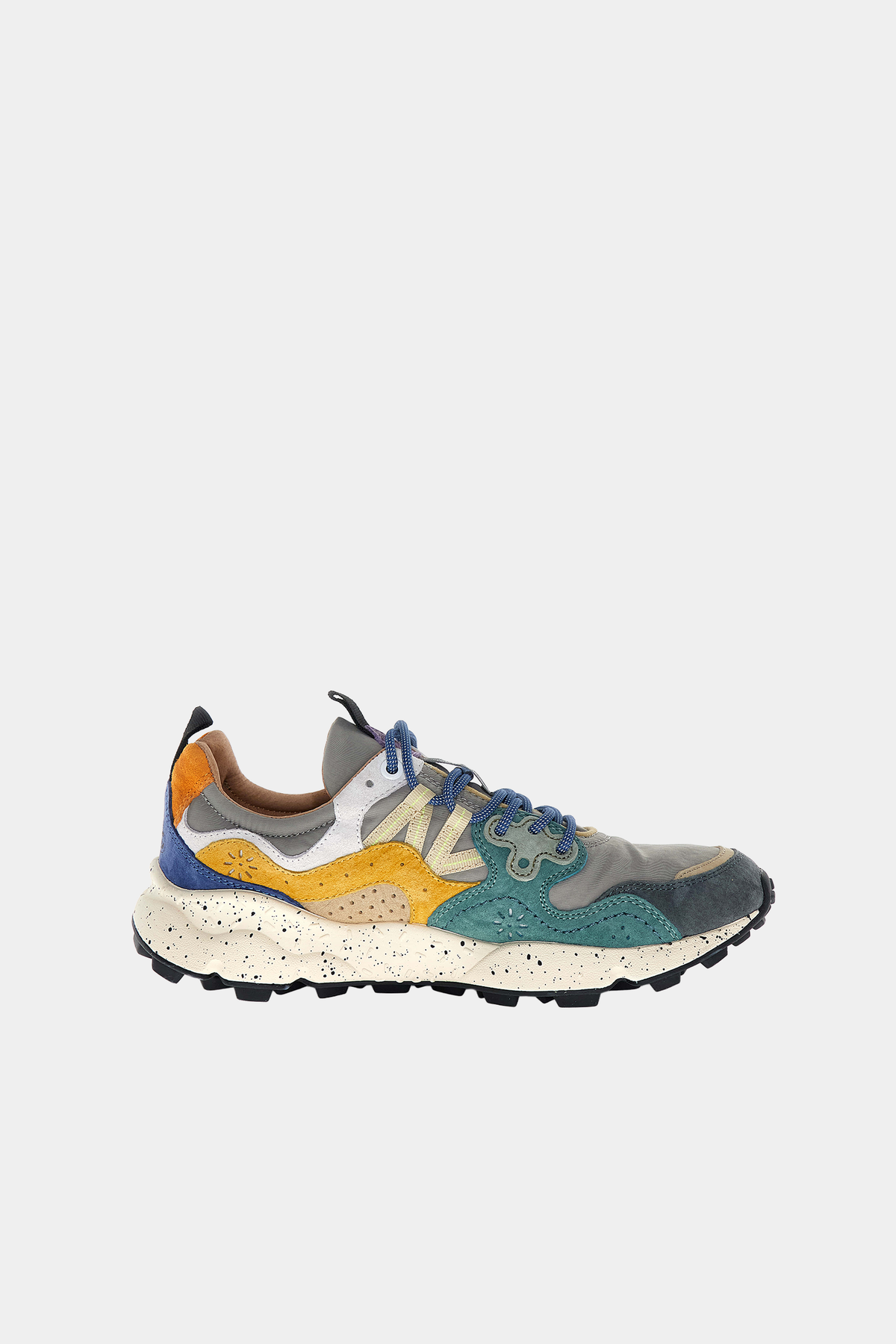 Sneaker Flower Mountain realizzata in suede e canvas, con occhielli rinforzati, lacci trekking, soletta interna in sughero anatomica e antibatterica. Suola in gomma ultraleggera con battistrada dentellato.