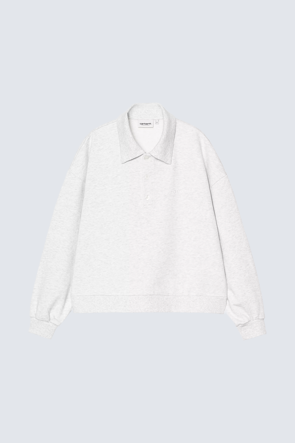 Felpa caratterizzata da vestibilità ampia e squadrata e realizzata in pesante jersey di cotone, sottoposto a lavaggio con pietre abrasive per maggior morbidezza e per un aspetto leggermente consunto. La felpa è caratterizzata da colletto a coste e mezza apertura con bottoni. Sul petto campeggia un ricamo del logo.